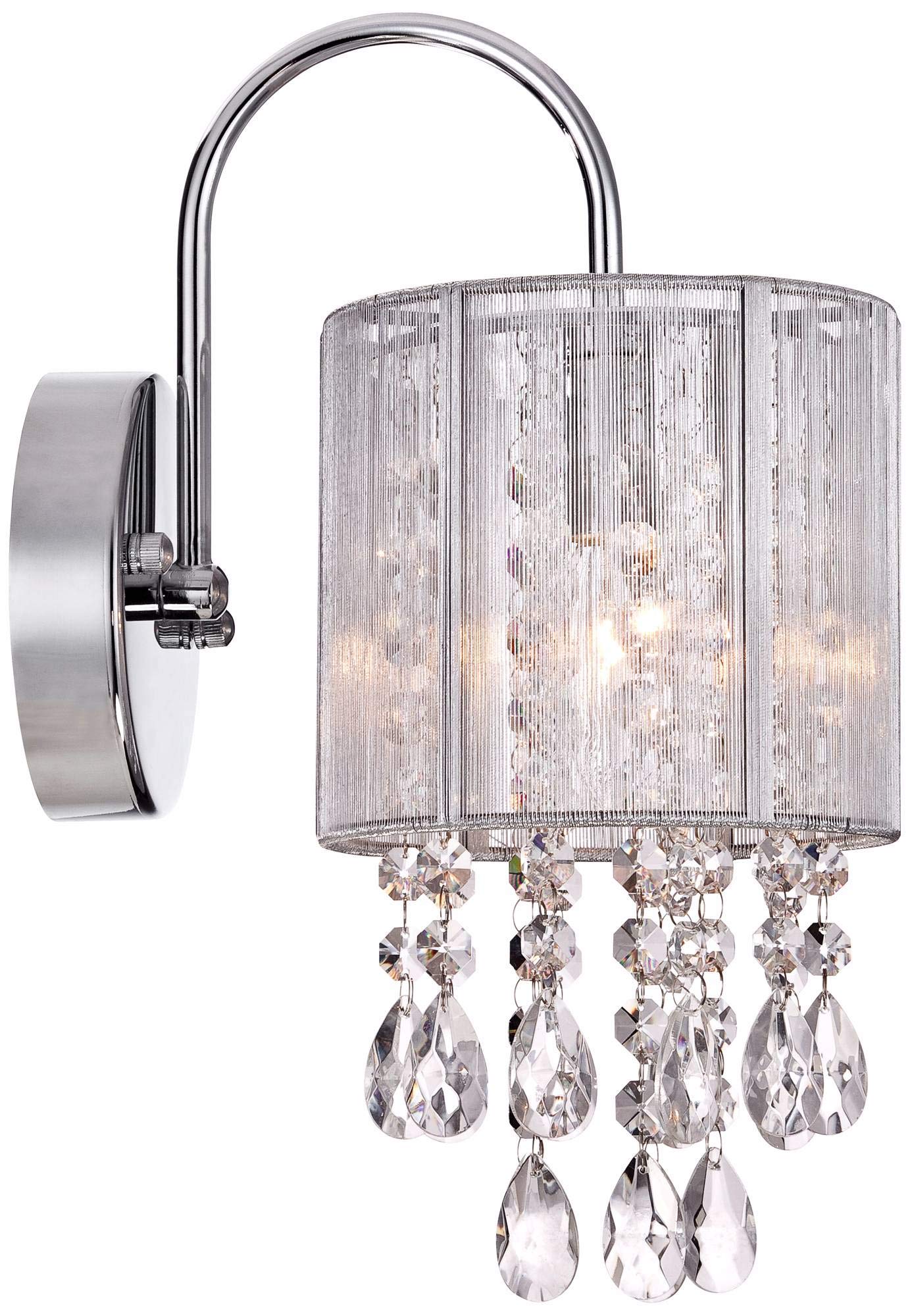 Possini Euro Design Silver Line Modern Wall Sconce Lighting Chrome Silver 12 Wide Fixture Curved Arm Crystal Glass String Shade For Bedroom Bathroom Vanity Reading Living Room Hallway Possini Euro Lighting
