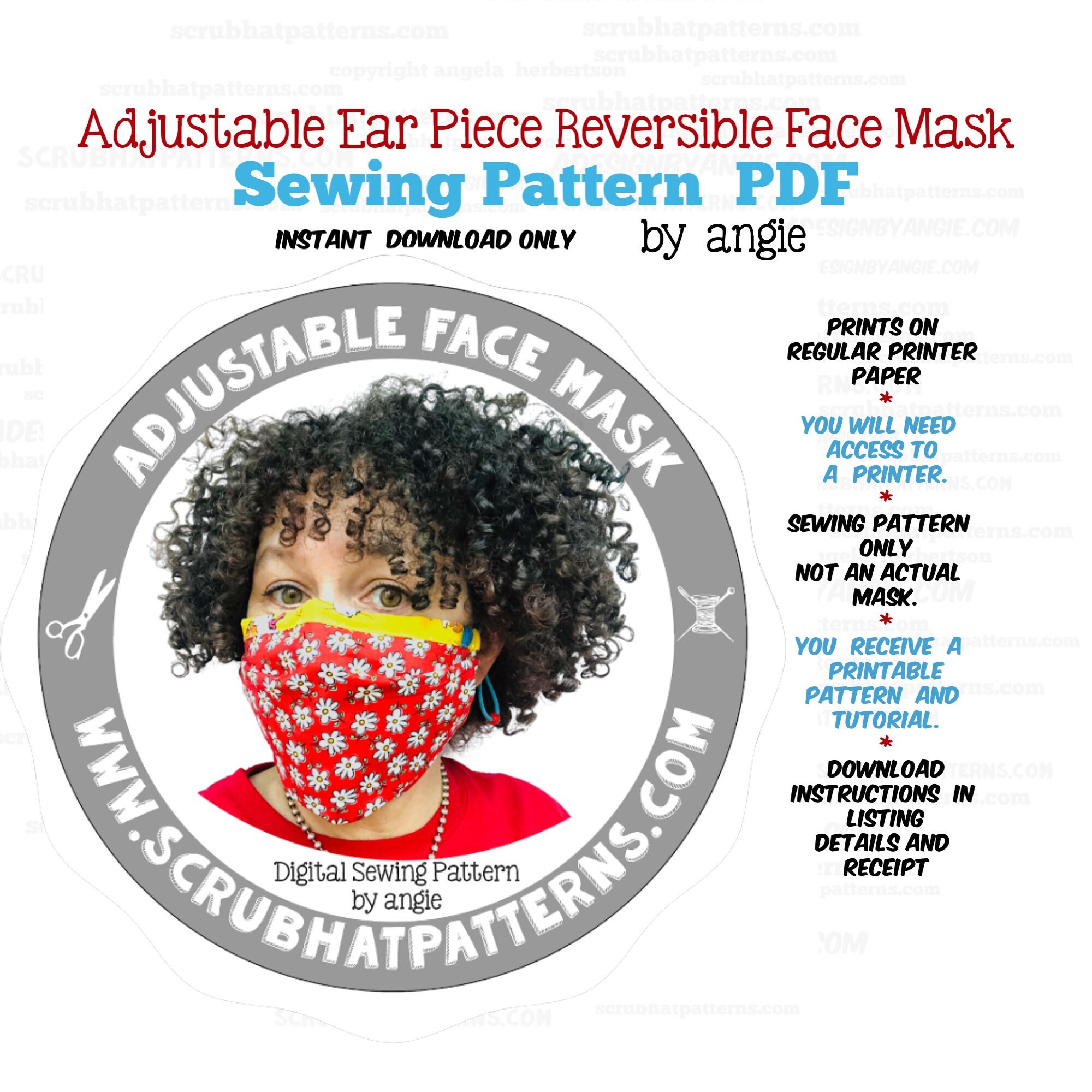Easy Face Mask Sewing Pattern Printable Downloadable Etsy Uk