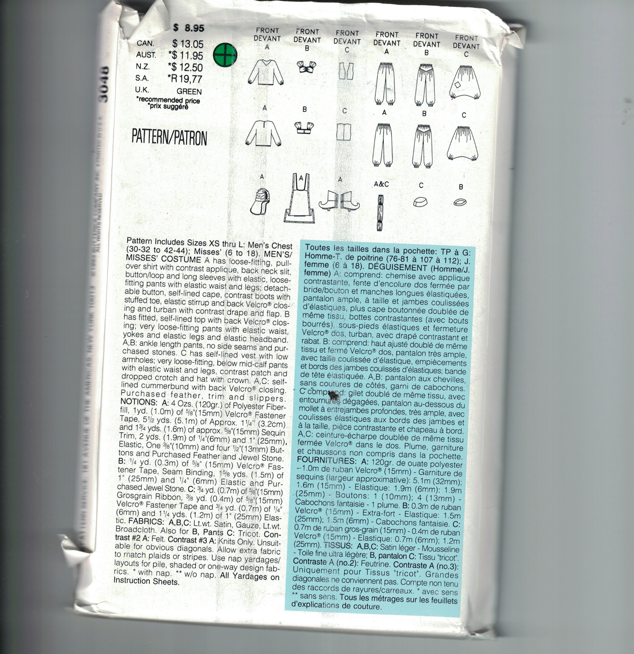 Costume Sewing Pattern Butterick 3048 Mens Misses Aladdin Etsy Uk